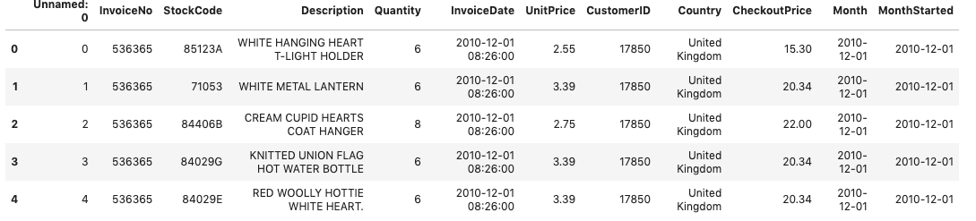 # MonthStarted 컬럼을 생성하여 해당 고객이 구매한 가장 빠른 달을 구해줌