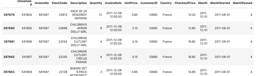 - MonthPassed : 최초 구매월로부터의 월 차이