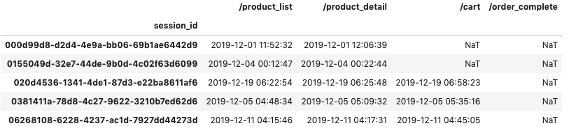 funnel = funnel.pivot(index='session_id', columns='step_no', values='datetime')
