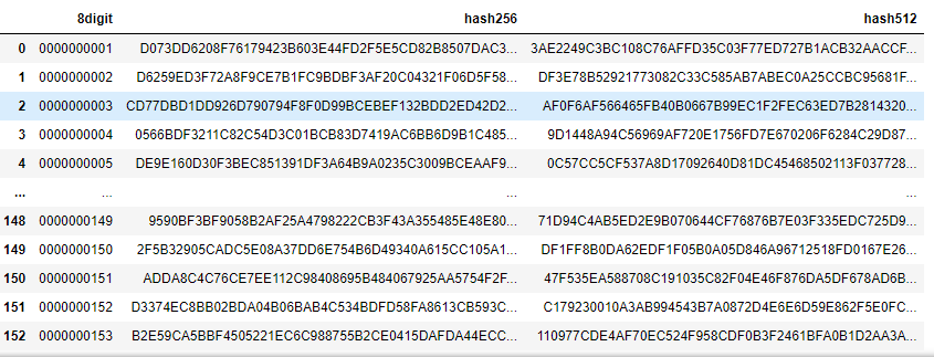 df["hash512"] = df['8digit'].apply(lambda x: hashlib.sha512(str(x).encode()).hexdigest()).str.upper()