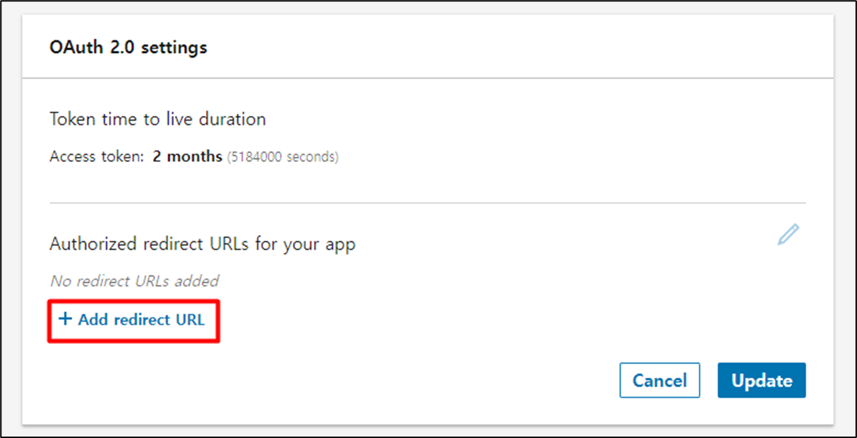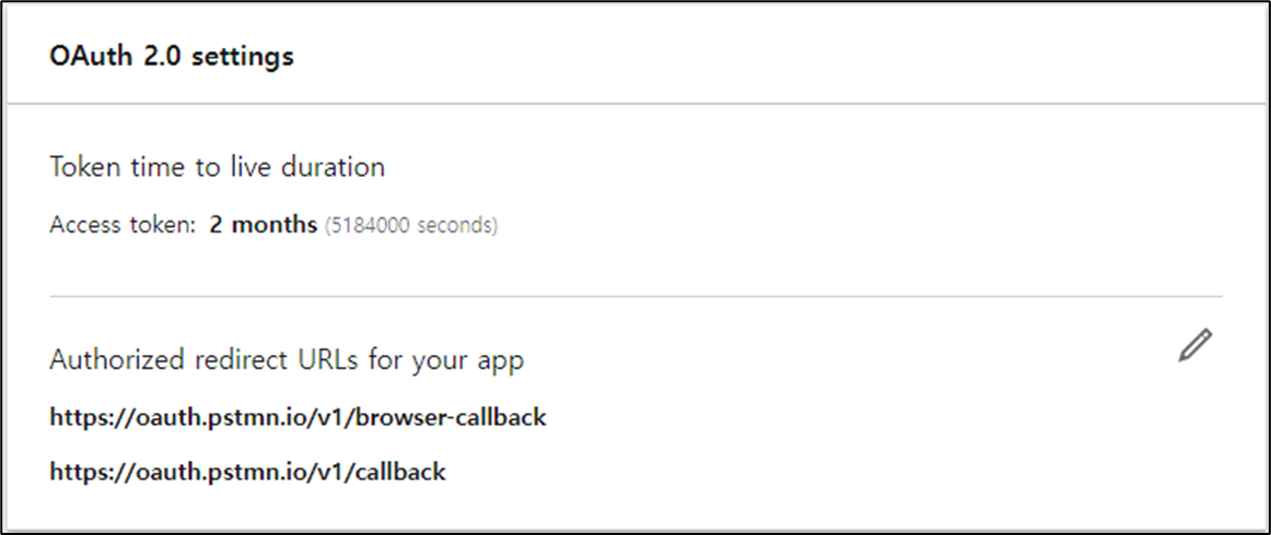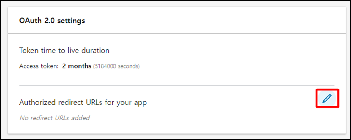 그리고 바로 밑에 카드에서 OAuth 2.0 Setting로 가서 URL을 추가해준다.