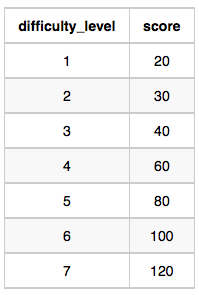 - Difficulty: The difficult_level is the level of difficulty of the challenge, and score is the score of the challenge for the difficulty level.