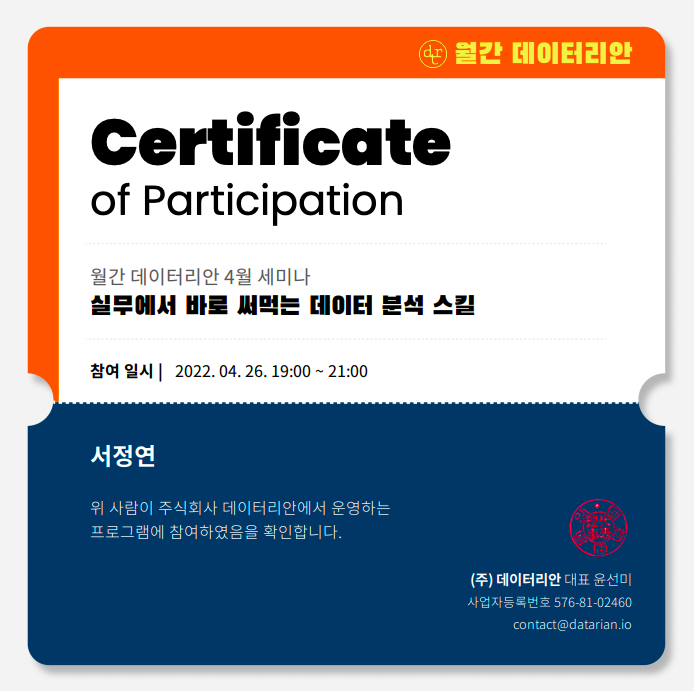 [Webinar Review] 4월 데이터리안 웨비나 - 실무에서 바로 써먹는 데이터 분석 스킬 본문