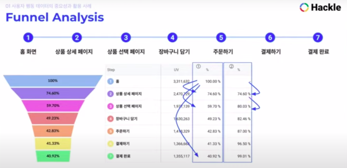 - ๊ณ ๊ฐ์ด ๋ช ๋จ๊ณ๋ฅผ ๊ฑฐ์ณ์ ๊ตฌ๋งค๊ฐ ํ๋์ง ๋ฑ์ ์ฌ์ฉ์ ํ๋ ๋ฐ์ดํฐ ์์ง์ด ํ์