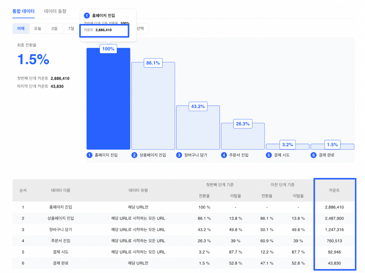 ๊ตฌ๋งค ํ๋ก์ฐ๋ฅผ ์ค์ฌ์ ๊ณ ๊ฐ์ ์ดํ๋ฅ ์ด ์ ์ ์ง ํ์ธ์ด ๊ฐ๋ฅํจ