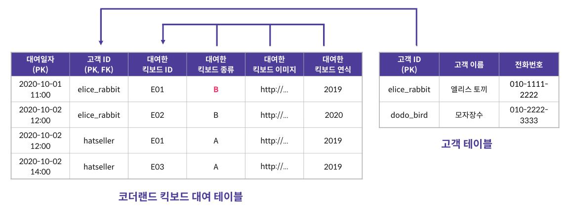 - 테이블간 데이터 조작시 발생할 수 있는 이상 현상을 줄이기 위한 작업